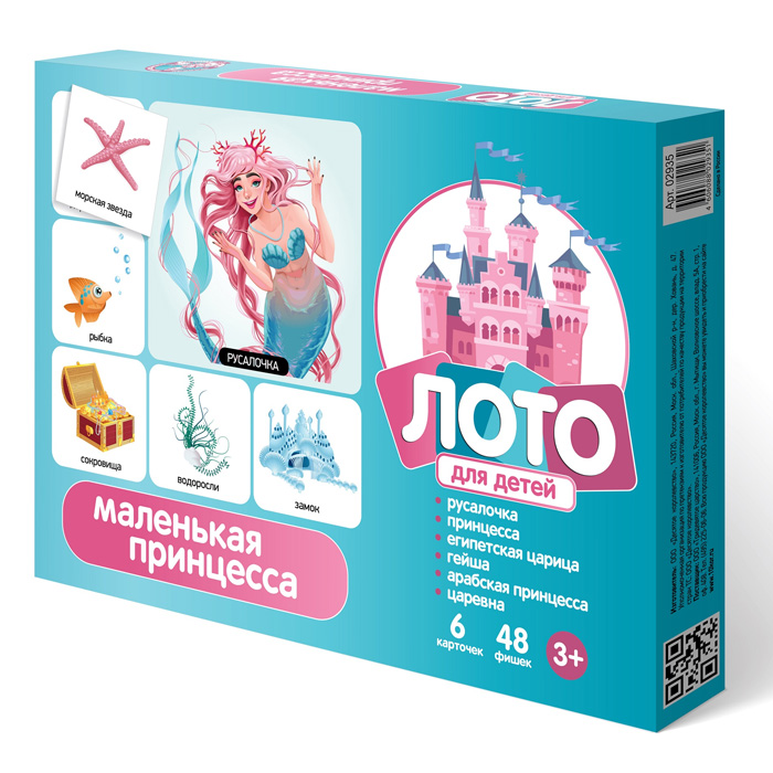 На каждой из 6 больших карточек (размером 15x11 см) изображены маленькие принцессы и их окружение из разных культур и сказок. Закрывая маленькими карточками (размером 3,5х3,5 см) окружающие малые картинки, девочки узнают, чем похожа и чем отличается жизнь дочерей европейского короля, русского и морского царей, японского императора, предводителя викингов и восточного падишаха – где живут принцессы, что они любят, как развлекаются, кто их родители, друзья и поклонники.