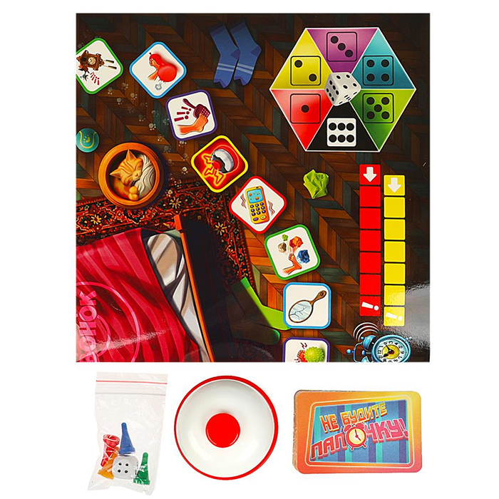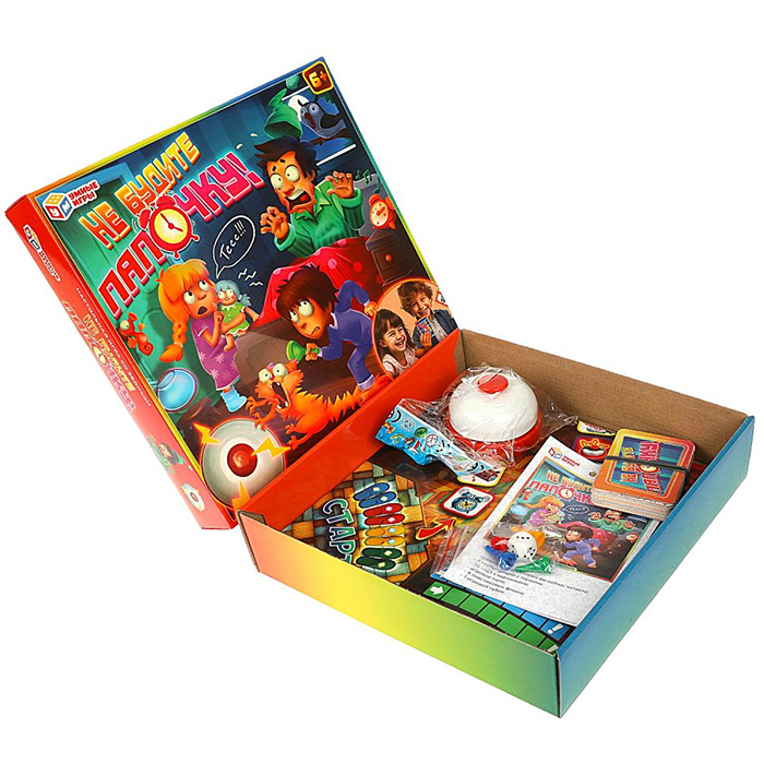 Ваша задача – добраться до холодильника, не потревожив сон папочки. В комплекте идёт звонок. Во время хода каждый игрок передвигается по полю и выполняет соответствующее действие на клетке. Для определения задания потребуется снова кинуть кубик. Если вы оказались на клетке со звонком, не медлите и звоните первым!
