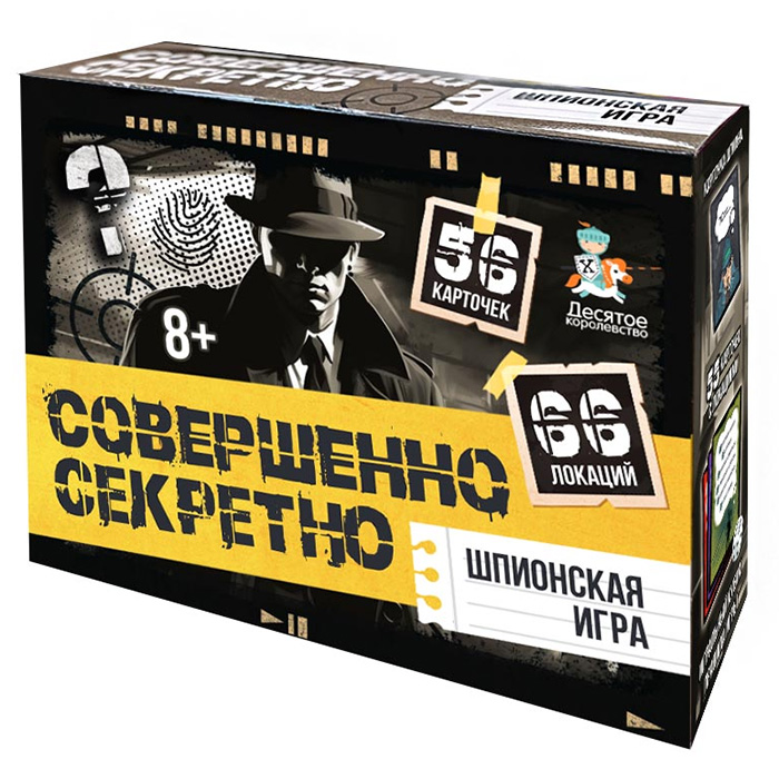 С увлекательной шпионской игрой «Совершенно секретно» вы отправитесь на секретное задание в одно тайное место. Но среди вас есть шпион, которого надо вычислить до того, как он раскроет это тайное место. Для детей старше 8 лет.