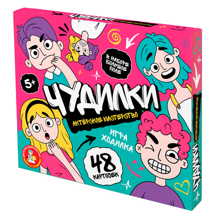 Настольная игра «Чудилки. Актерское мастерство» развивает фантазию, образное мышление и способствует развитию коммуникативных способностей.