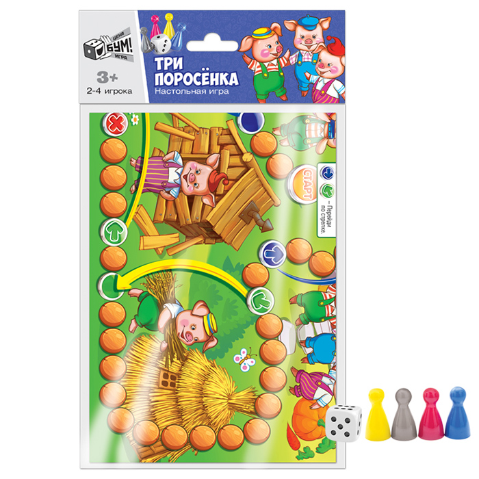 Комплектация: игровое поле, кубик, фишки, инструкция. Упаковка: пакет с подвесом.
