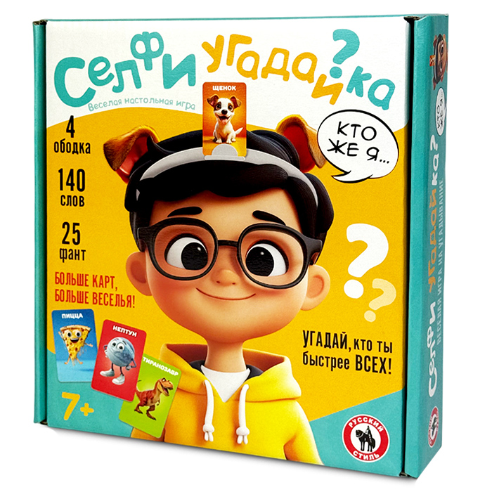 Игра "Селфи Угадайка" - веселая настольная игра, для идеального развлечения, семейных вечеров и встреч с друзьями. В комплекте 4 ободка из мягкого пластика, расширенный набор карточек: 140 забавных персонажей, дополнительные условия игры и карточки с фантами.