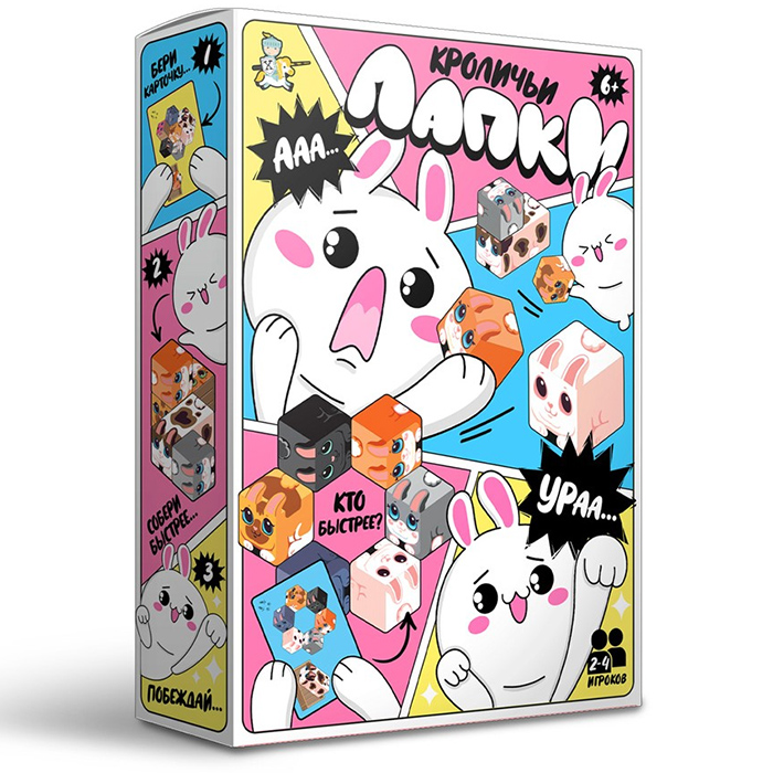 Настольная игра «Кроличьи Лапки» - это не просто игра, а настоящее испытание скорости, смекалки и молниеносной реакции, которое захватит вас с первых минут. Игроки стараются быстрее всех собрать пазл, изображенный на карточке с заданием, чтобы получить баллы.