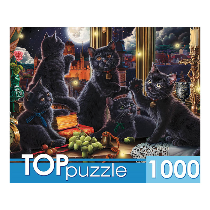 Пазлы 1000 элементов Чёрные котята и светлячки