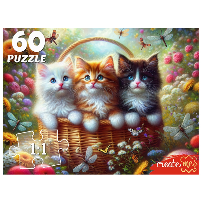 Пазлы 60 элементов Три котенка в корзине