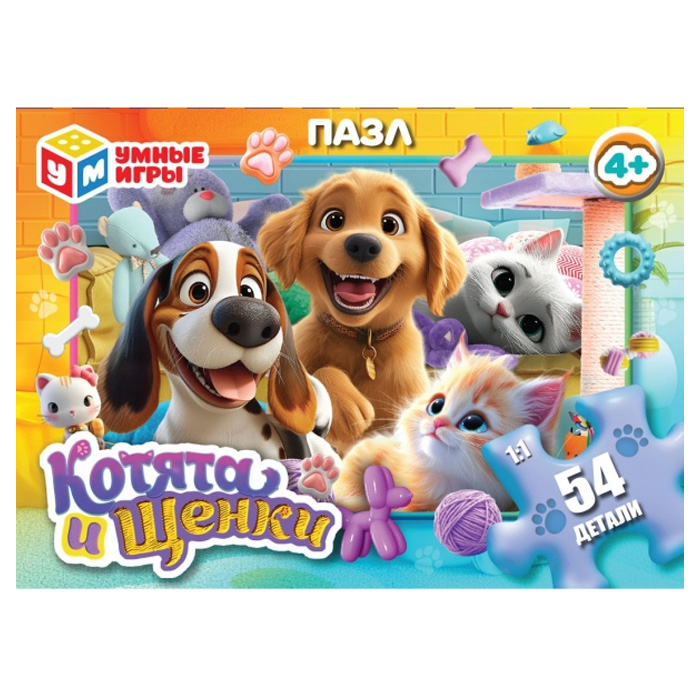 Классические пазлы в коробке «Котята и щенки» ТМ «Умные игры» непременно понравятся маленьким любознайкам: