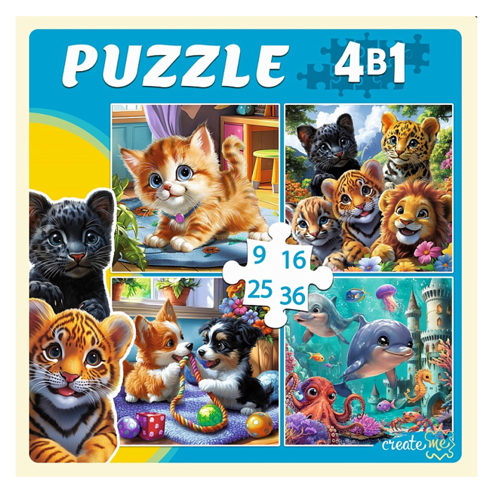 Пазлы 4 в 1 В удивительном мире животных (9,16,25,36 элементов)