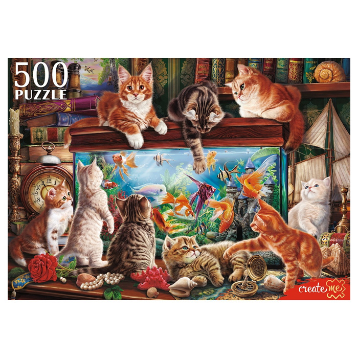 Пазлы 500 элементов Кошки у большого аквариума