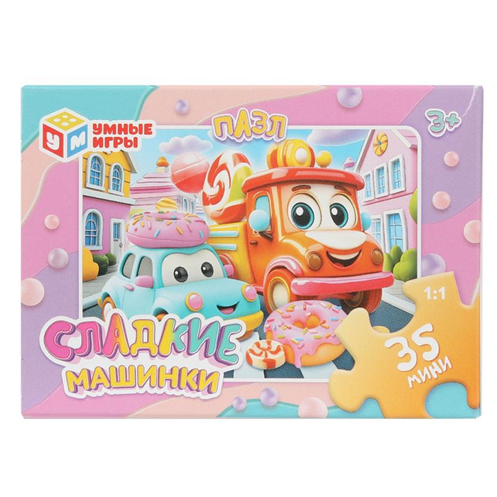 Классические пазлы в коробке «Сладкие машинки» ТМ «Умные игры» непременно понравятся маленьким любознайкам: