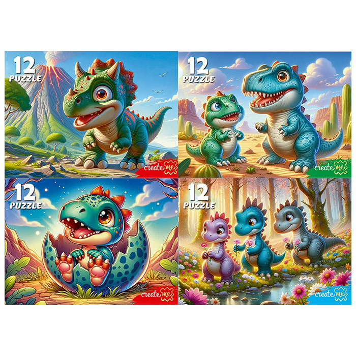 Пазлы 12 элементов Милые динозаврики