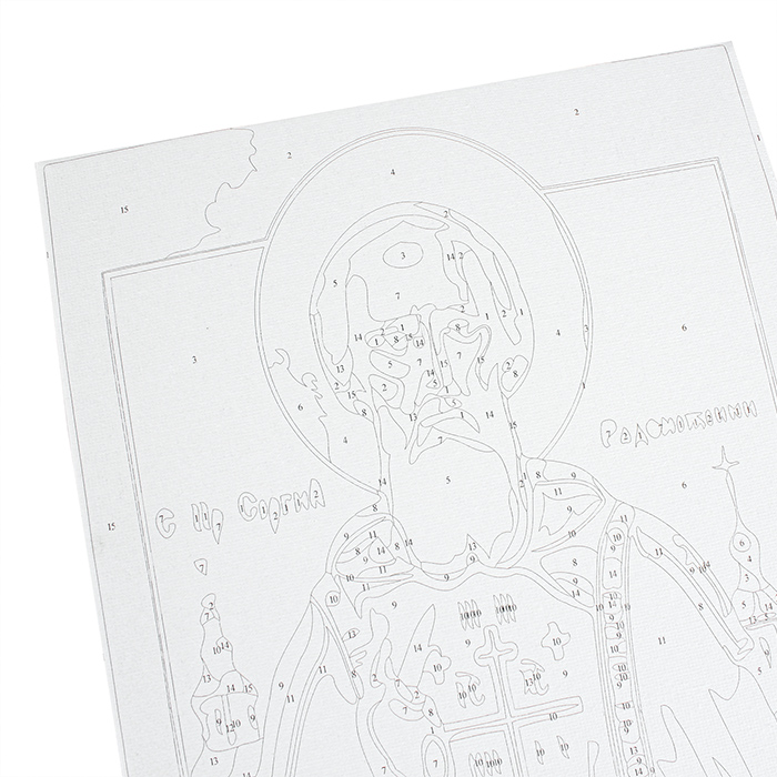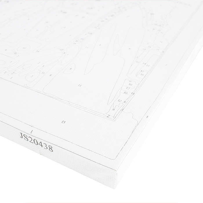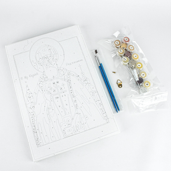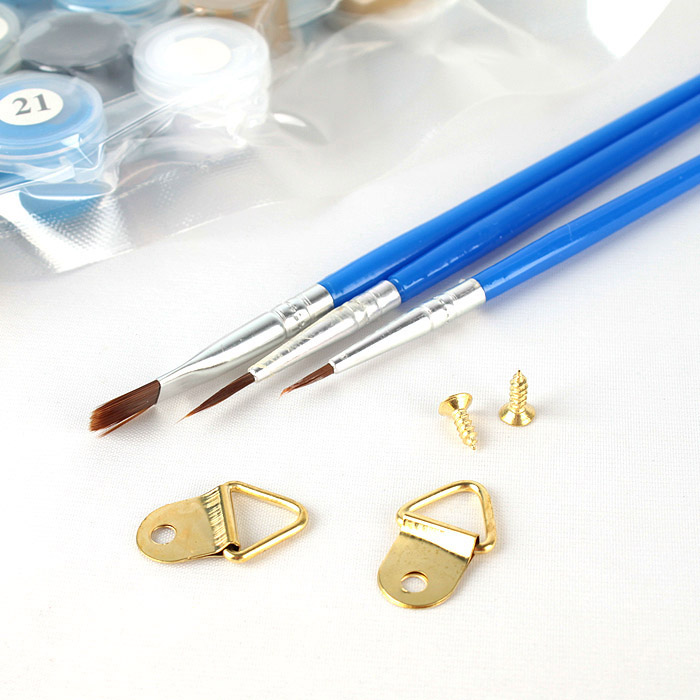 Комплектность: холст на подрамнике, набор акриловых красок, набор кистей, контрольный лист с нанесенной схемой, крепежи для крепления готовой картины.