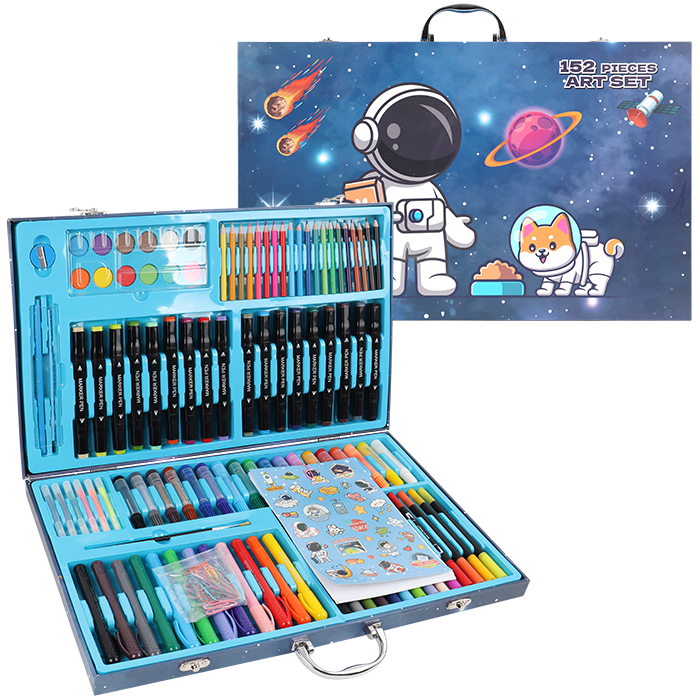 Набор художникаКомплектность 152 предмета : маркеры двусторонние -14 цветов, маркеры акриловые- 18 цветов, маркеры для скетчинга двусторонние - 18 цветов, карандаши восковые - 12 цветов, текстовыделители - 6 цветов, карандаши цветные - 20 цветов, сухая акварель - 12 цветов, кисть синтетическая , палитра, точилка , линейка , карандаш ч/гр, наклейки- 1 лист, раскраска- 15 листов , скрепки. Упаковка: пленка 47*30*4,5см