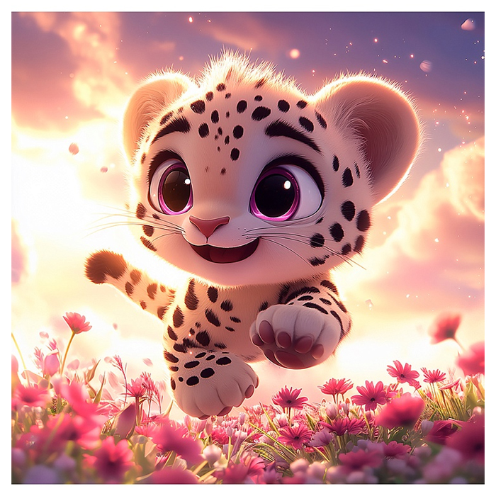 Холст с красками 20*20см по номерам "Бегущий снежный барс"