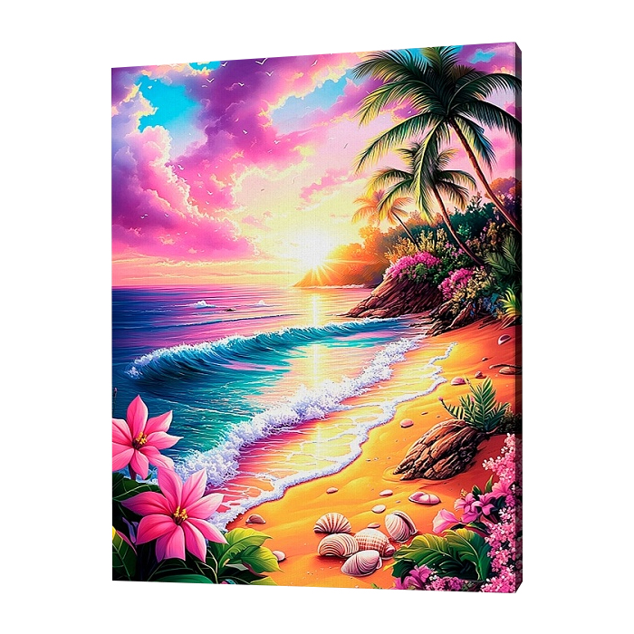 Холст с красками 30*30см по номерам "Розовый закат на острове"