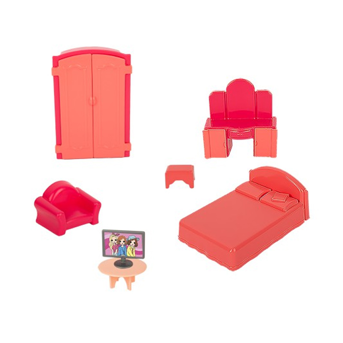 Набор мебели для кукол «Спальня» (7 предм.) ( кровать, трюмо, кресло, стол журнальный, телевизор, шкаф, пуфик)
