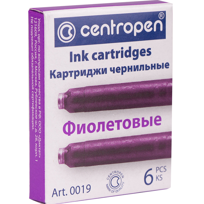Набор сменных картриджей для перьевой ручки. Цвет чернил - фиолетовый, упаковка 6 шт, картон, европодвес. Сменные картриджи с чернилами позволяют легко и просто заправить перьевую ручку, при этом не испачкавшись.