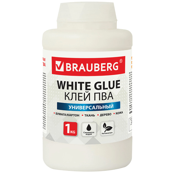 Клей ПВА универсальный BRAUBERG применяется для изделий из бумаги, картона, тканей, виниловых и бумажных обоев. Может использоваться в качестве модификатора для улучшения технологических и адгезионных свойств.