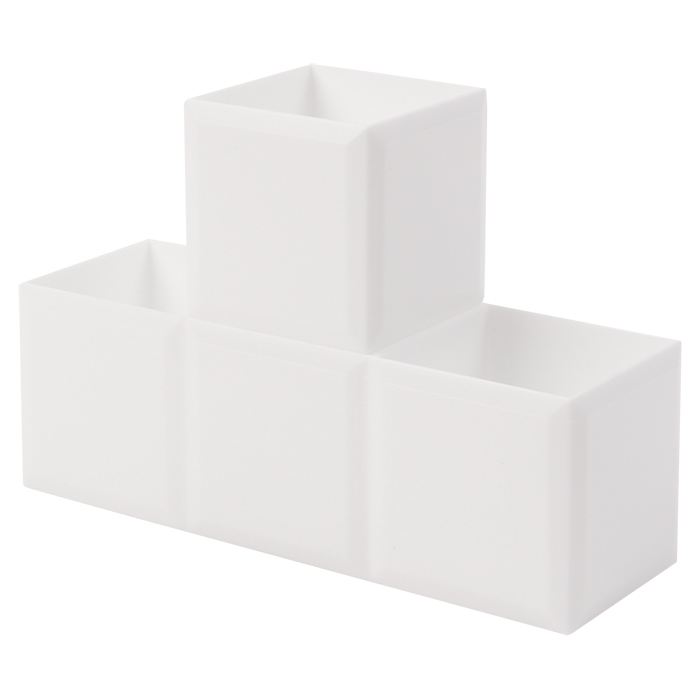Предназначен для организации пространства на рабочем столе. Органайзер-трансформер на 3 отделения. Размер: 15,4*11*5 см. В комплекте есть наклейки. Цвет: белый. Упаковка: кар. кор. 22*5,5*5,5см.