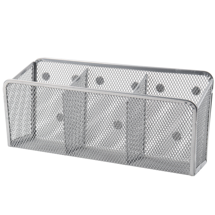 Органайзер на 3 отделения. Для хранения офисных или хозяйственно-бытовых принадлежностей. Крепится к любым металлическим поверхностям , магнитно-маркерным и магнитно-меловым доскам. Цвет: серый.26,5*12,5*9см. Упаковка-карт. коробка.27*9*13см