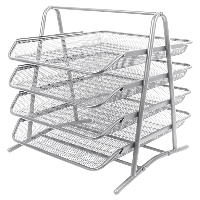 Предназначен для систематизации и хранения документов. Идеален для офиса и для дома. Количество секций: 4. Изготовлен из металла. Цвет: серый. Упаковка - коробка 30*36,5*6см.