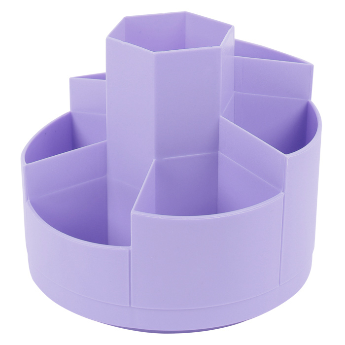 Предназначен для организации пространства на рабочем столе. Органайзер на 7 отделений. Цвет: сиреневый. Упаковка: плёнка. 13*11,5*13см