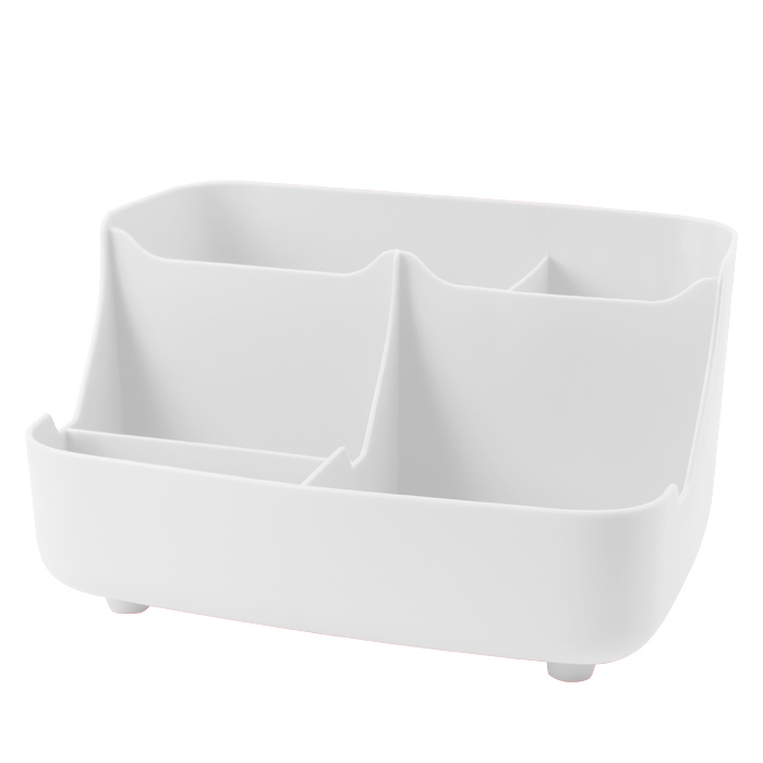 Предназначен для организации пространства на рабочем столе. Органайзер на 5 отделений. Цвет: белый. Размер : 18,5*9,8*13,5см Упаковка: пакет 18,7*10*13,7см.