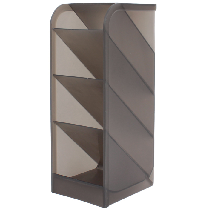 Предназначен для организации пространства на рабочем столе. Органайзер на 4 отделения. Размер: 7,5*20,3*9 см. Цвет : полупрозрачный черный. Упаковка: пленка.