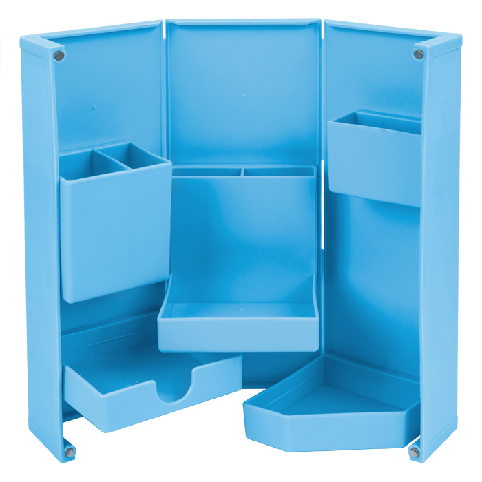 Предназначен для организации пространства на рабочем столе. Органайзер на 8 отделений. Цвет: голубой. Упаковка: кар. кор.10*25*10см