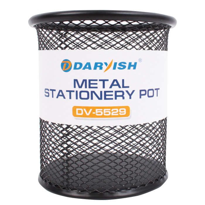 Стакан для канцелярских принадлежностей металлический круглый, цвет - черный. Высота 10 см, диаметр 8 см.