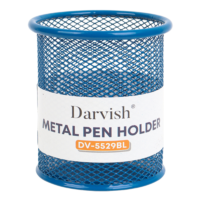 Стакан для канцелярских принадлежностей  металлический круглый, цвет -  синий. Высота 10 см, диаметр 8 см.