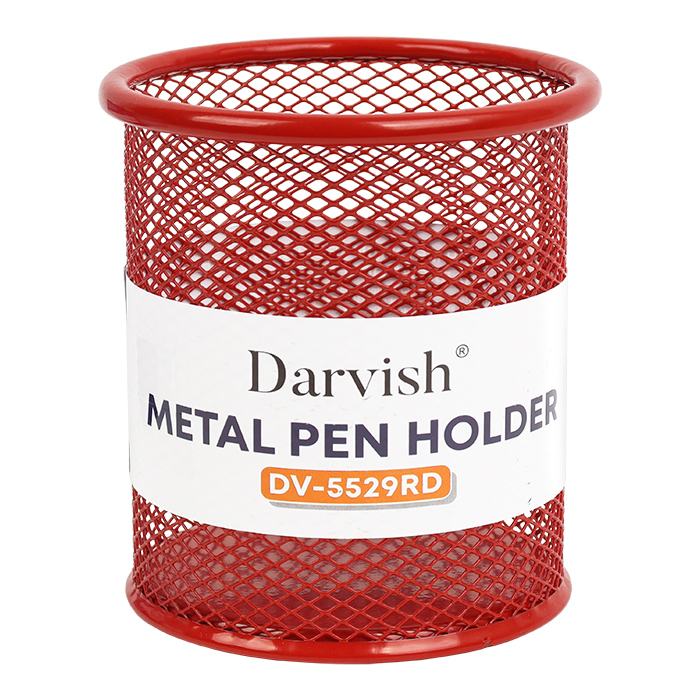 Стакан металлический для канцелярских принадлежностей круглый красный