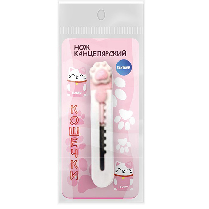 Нож канцелярский"Лапка". Благодаря компактным размерам, нож удобно носить c собой. Пластиковый корпус хорошо лежит в руке, а декоративная фигурка ничуть не утяжеляет изделие. Система блокировки обеспечивает комфортное и безопасное использование. Выдвижное лезвие изготовлено из нержавеющей стали, дополнено специальными метками, нанесенными с помощью лазерной гравировки, позволяющими производить точное и качественное обламывание. Ширина лезвия – 9 мм. Индивидуальная упаковка с подвесом.
