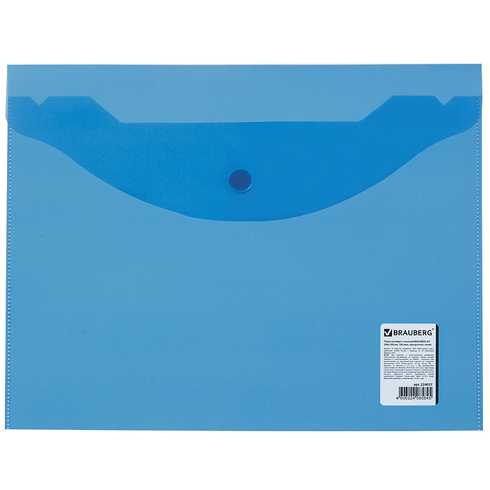 Папка-конверт на кнопке А5 "Brauberg" прозрачная синяя 180мкм