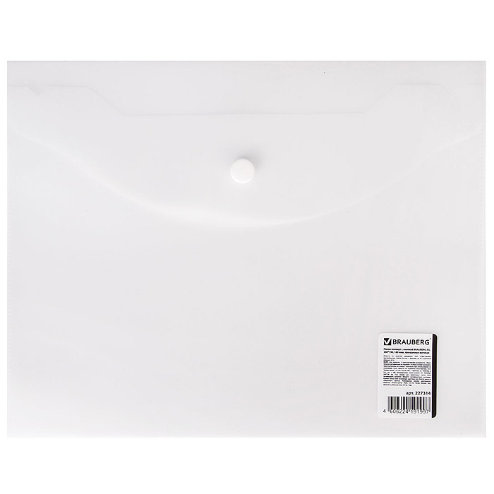 Папка-конверт на кнопке А5 "Brauberg" прозрачная 180мкм