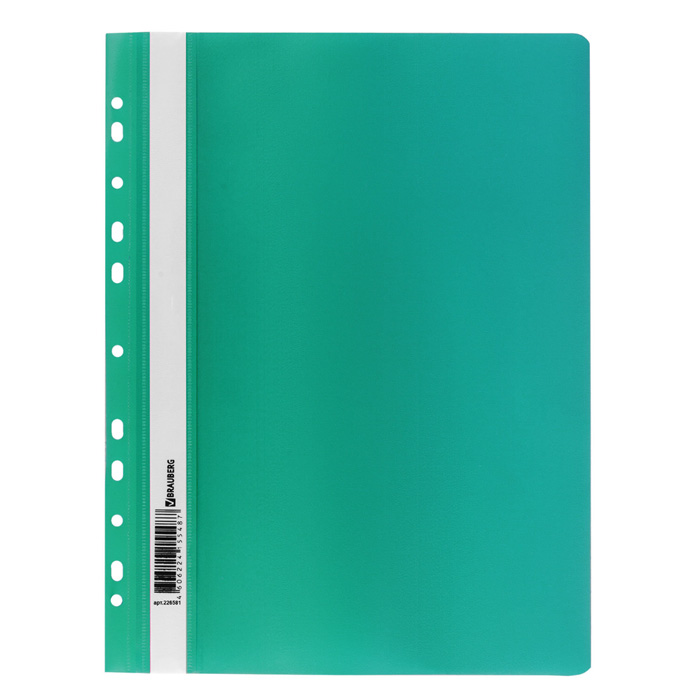 Папка-скоросшиватель с перфорацией А4 "Brauberg" 180мкм зелёная