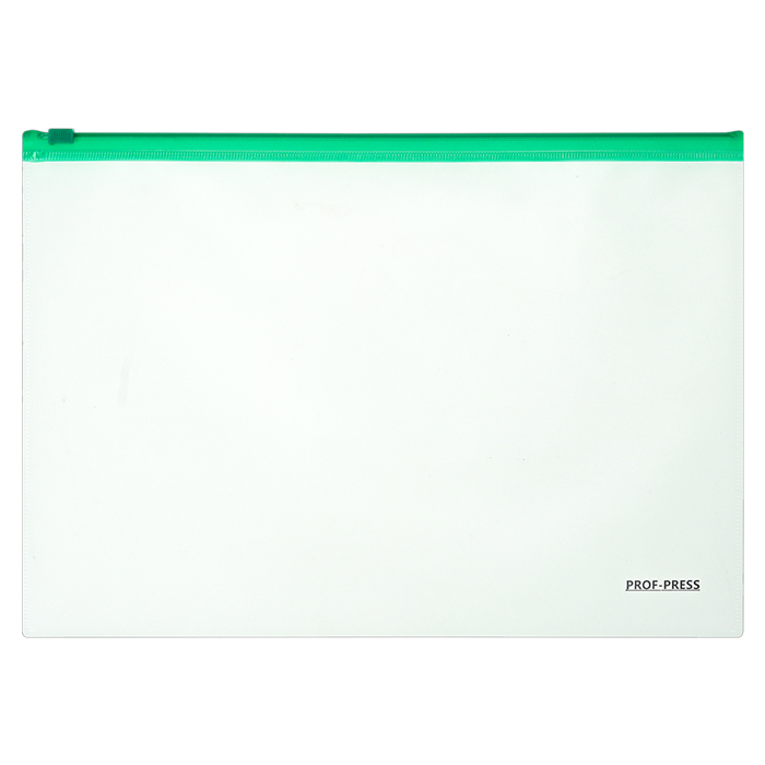 Папка-конверт на молнии А4 160мкм, цвет прозрачный, застёжка зелёная