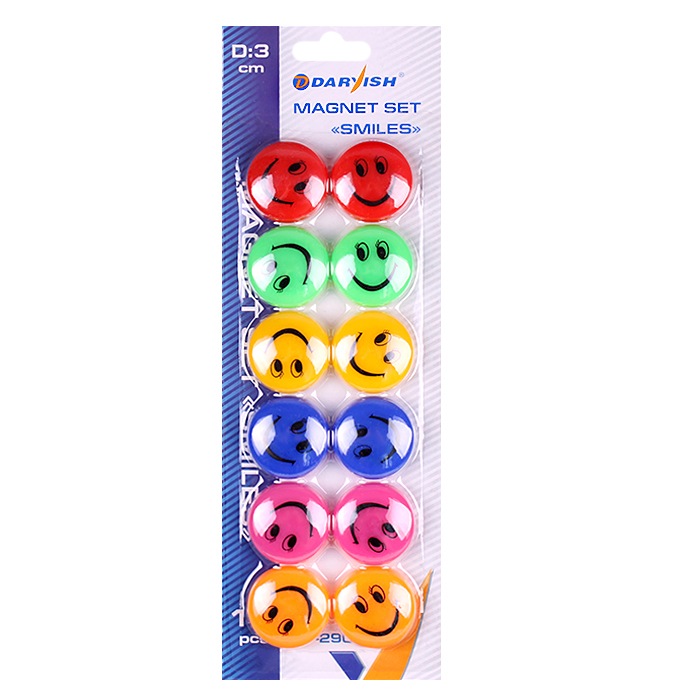Магниты для доски цветные "Смайлики" d=3см "Darvish" 12шт/уп . Упаковка - карт.блистер с европодвесом 8*22,7см