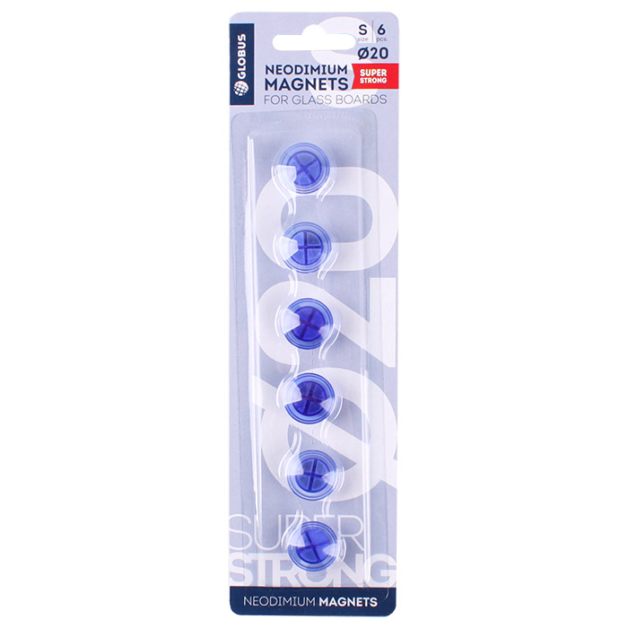 Магниты неодимовые прозрачно-синие, супер-сильные 20мм 6шт/уп Globus