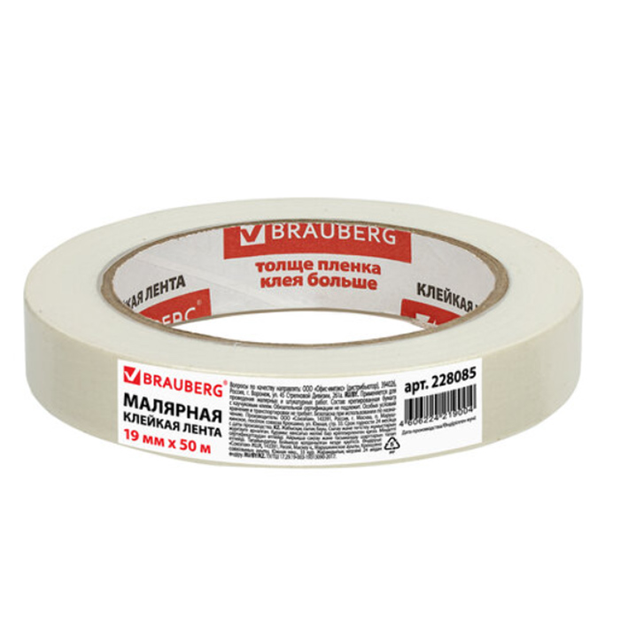 Изготовлена из крепированной бумаги белого цвета толщиной 125 мкм. Малярная клейкая лента длиной 50 м и шириной 19 мм легко удаляется с поверхности, не оставляя следов. На поверхности ленты можно делать надписи. Может использоваться художниками для крепления бумаги к планшету, а также для маскировки участков работы, которые нужно защитить от окрашивания.