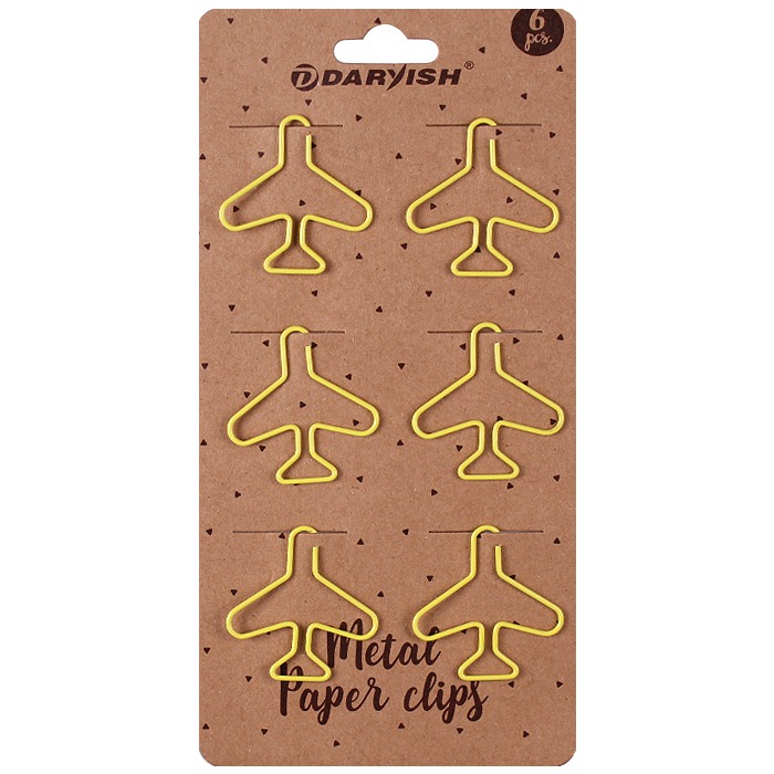 Скрепки металлические "Самолёт" цветн."Darvish" 6шт/уп (набор)