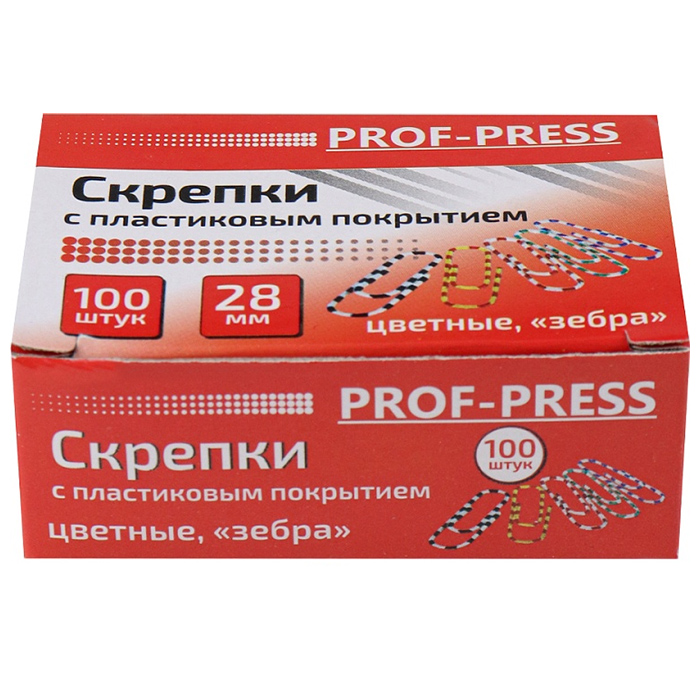 Скрепки 28мм "Зебра" цветные 100шт /уп