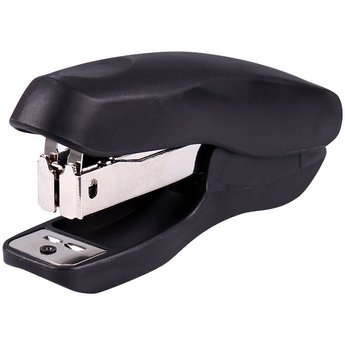 Удобный, пластиковый степлер для скоб №24, сшивает до 20 листов, вмещает 50 скоб. Пластиковый корпус, металлический механизм, цвет корпуса - черный.