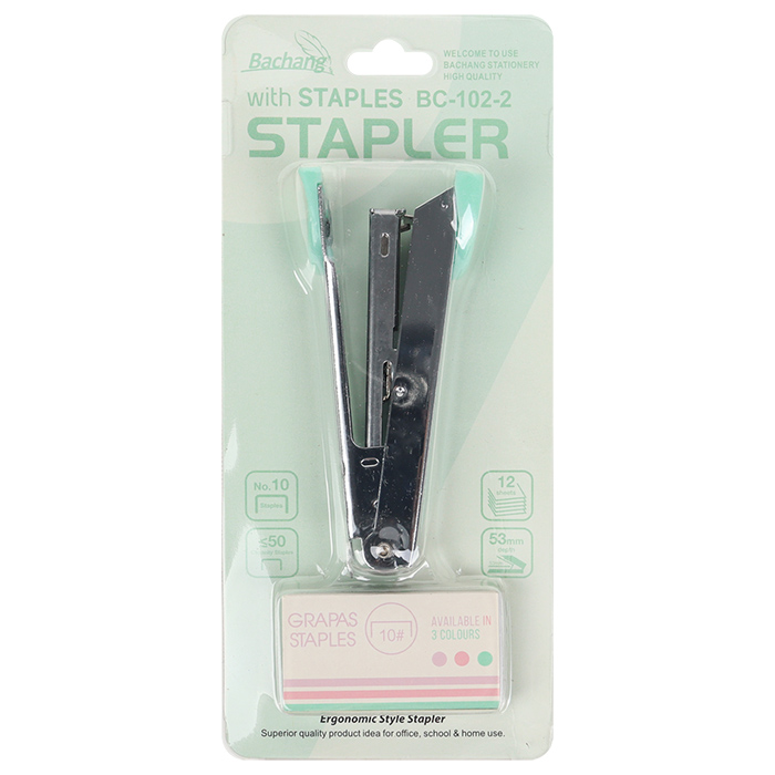 Предназначен для скрепления листов бумаги металлическими скобами , сшивает до 12 листов. В наборе : степлер, скобы -1000шт. Цвет ассорти. Упаковка: блистер с европодвесом 8*18*2см.