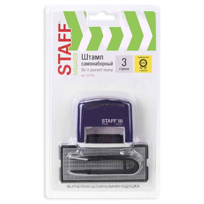 Штамп самонаборный 3-стр, оттиск 38*14мм, касса в комплекте