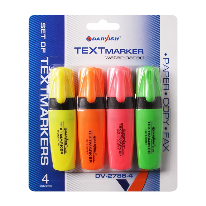 Набор Текстмаркеров 4шт/уп "Darvish" на водной основе с европодвесом
