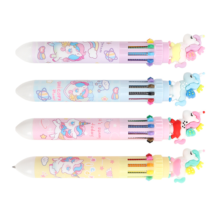 Ручка автоматическая шариковая 10 цветов "Единорожка"