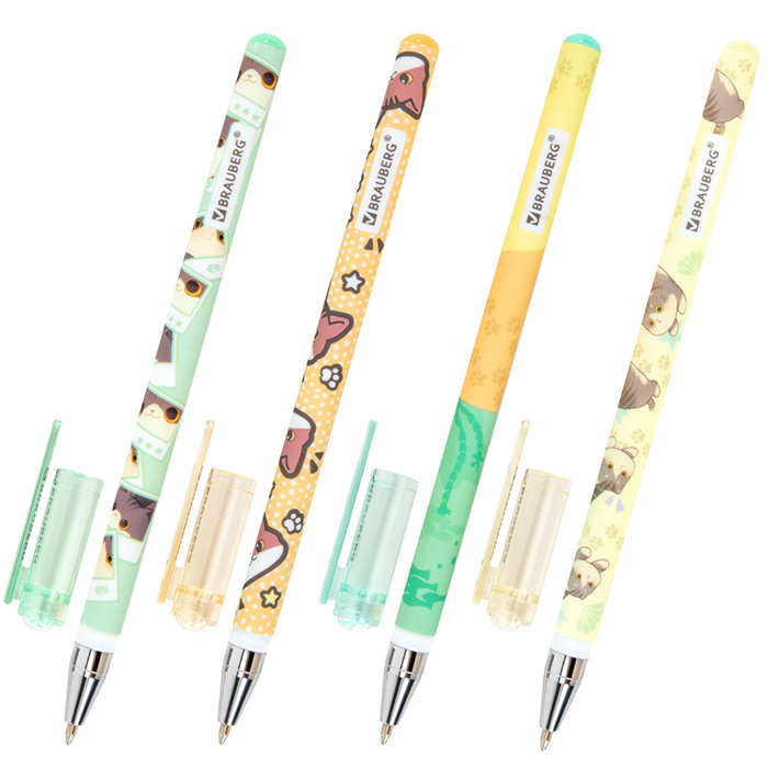 Ручка представлена в дизайнах ассорти с милыми котами, которые привлекают внимание своим очаровательным видом. Круглый корпус ручки имеет покрытие SOFT TOUCH, благодаря чему мягко ложится в руке при письме. Стандартный наконечник с диаметром 0,7 мм создает аккуратную линию письма, равную 0,35 мм. Синий цвет чернил делает ручку универсальной как для создания конспектов в школе, так и для ведения записей в офисе.