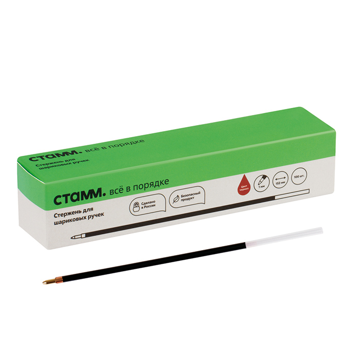 Шариковый стержень «СТАММ» красного цвета предназначен для замены исписанного стержня шариковой ручки. Диаметр пишущего узла составляет 1 мм, толщина линии – 0,7 мм. Длина линии письма может достигать 1500 метров. Длина стержня – 152 мм. Износостойкий наконечник и чернила на масляной основе обеспечивают мягкое, ровное и комфортное письмо.