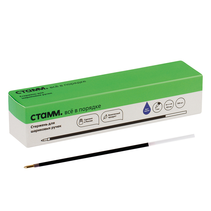 Шариковый стержень «СТАММ» синего цвета предназначен для замены исписанного стержня шариковой ручки. Диаметр пишущего узла составляет 1 мм, толщина линии – 0,7 мм. Длина линии письма может достигать 1500 метров. Длина стержня – 152 мм. Износостойкий наконечник и чернила на масляной основе обеспечивают мягкое, ровное и комфортное письмо.