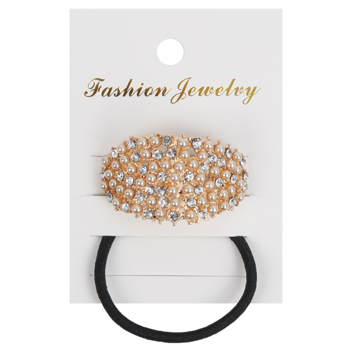 Использовать аксессуар для собирания волос и закрепления причёски.  Диаметр-5см. Резинка чёрного цвета с украшением жемчуг, стразы в двух цветах (золото, серебро). Упаковка-пакет с европодвесом. 8*12*1,5см